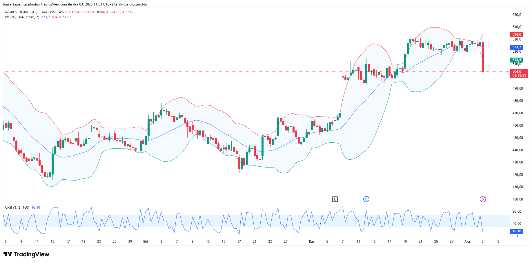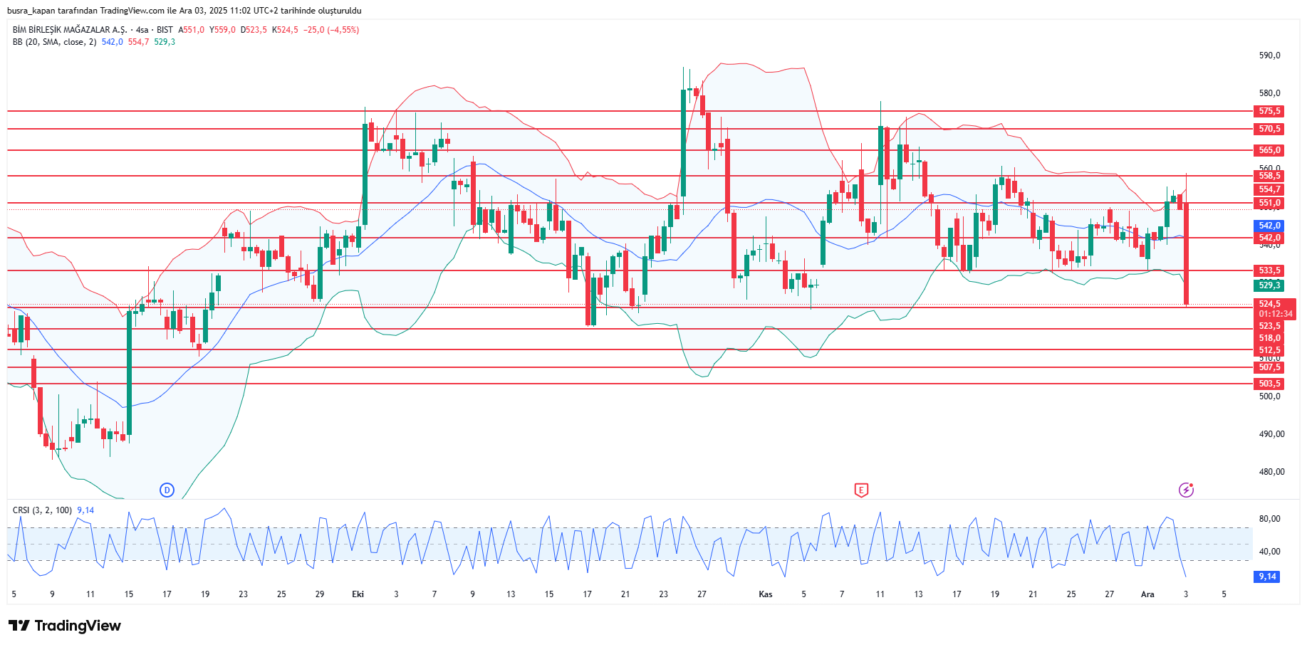 BİM (BIMAS) hisselerinde de sürekli işleme yüzde 4,00’ten fazla kayıp vererek 523,00 liraya geriledi. Kayıplar sonrasında ara verildi, tek fiyat emir toplama başladı.