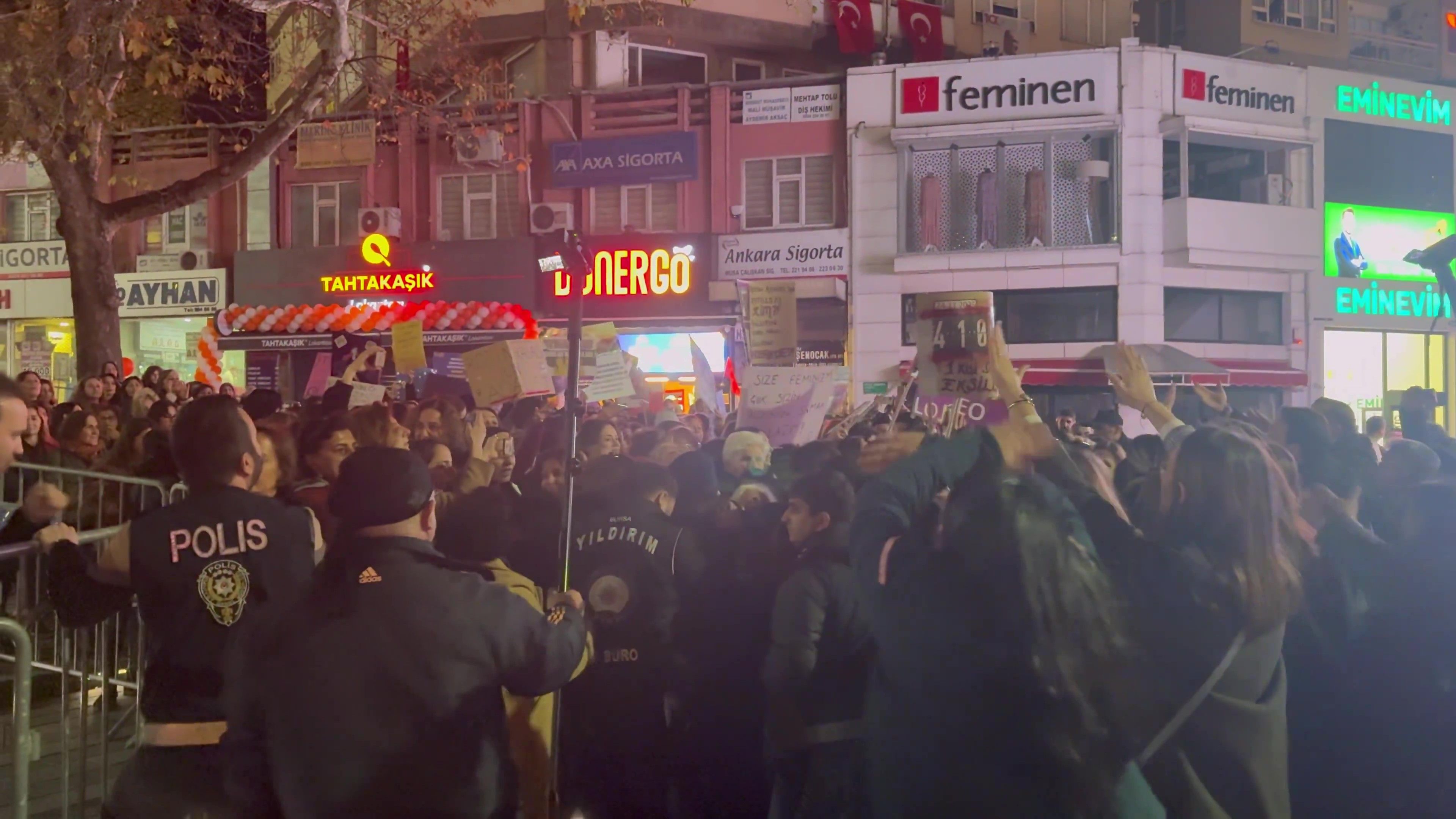 Bursa Muhalif Gazetesi’nin haberine göre; Kent Meydanına yapılmak istenen yürüyüşün engellenmesine tepki gösteren kadınların bekleyişi sürerken, ‘Kadınlar ölürken polis neredeydi’ sloganı atarak engellemeyi protesto ediyor.