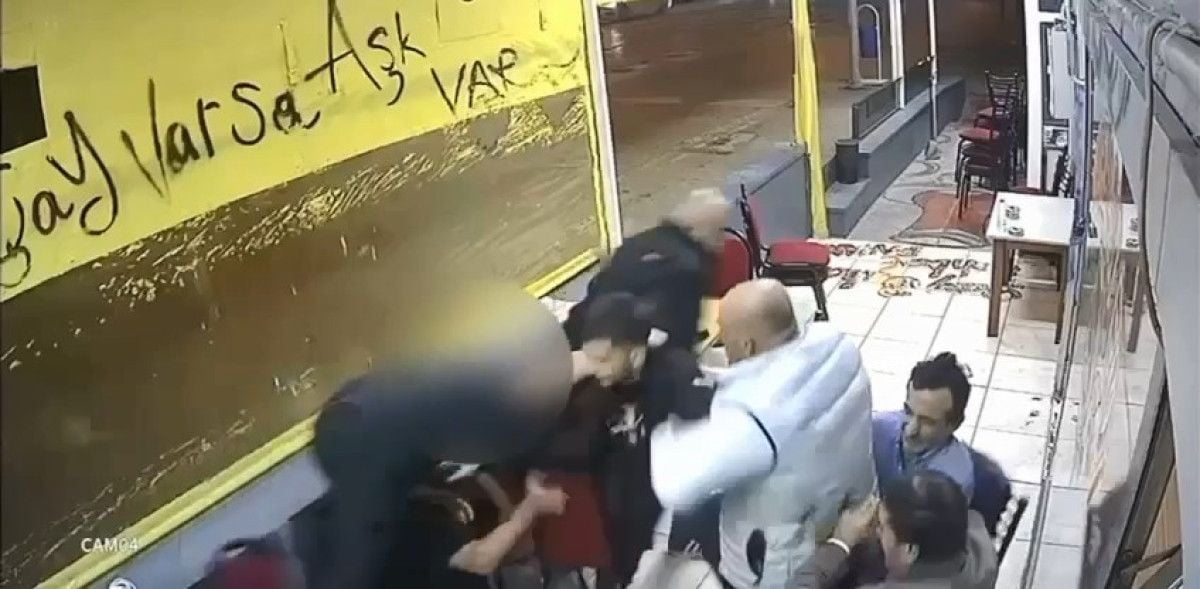 Olay anı, çay ocağının güvenlik kamerası tarafından kaydedildi ve polis, şüphelinin yakalanması için çaba harcamaya devam ediyor.