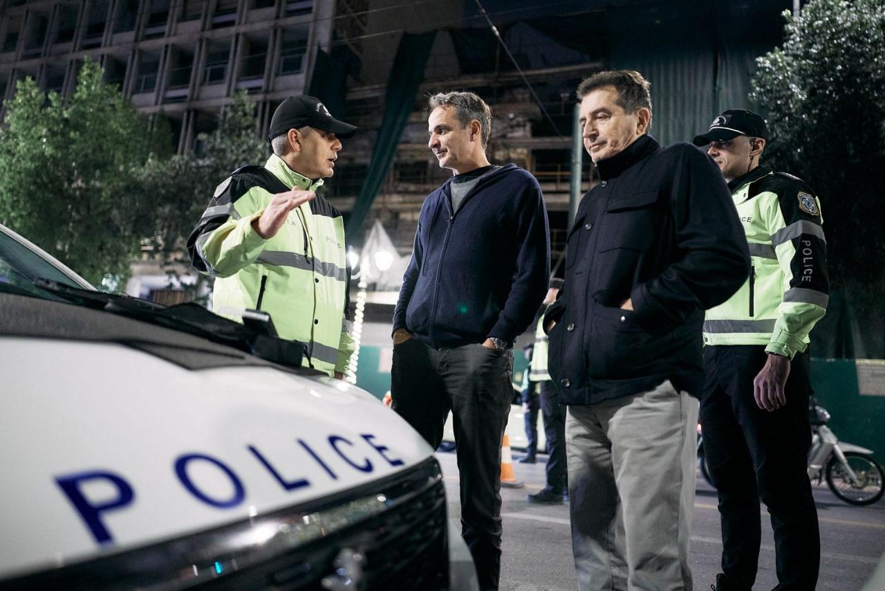 Başbakan Miçotakis, polislerle sohbet edip hatıra fotoğrafı çektirdikten sonra bölgeden ayrıldı.