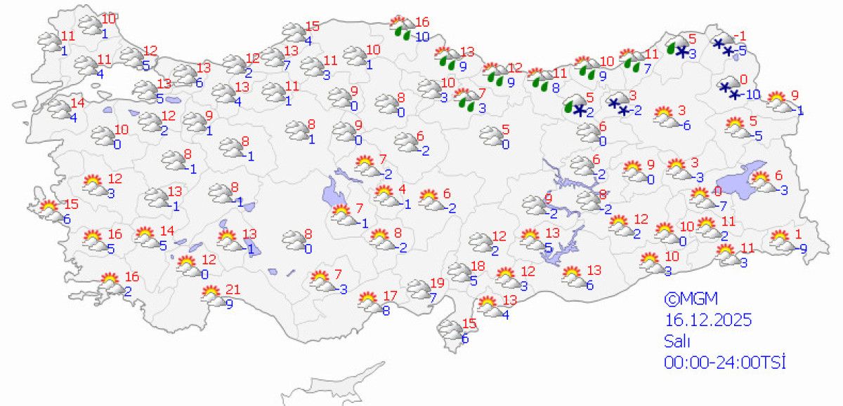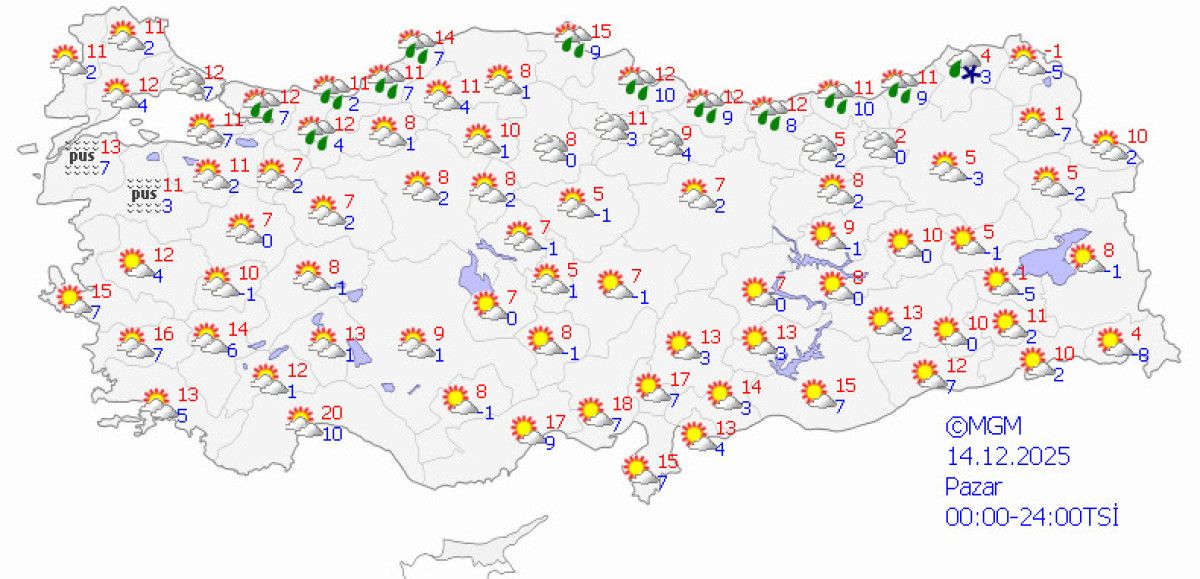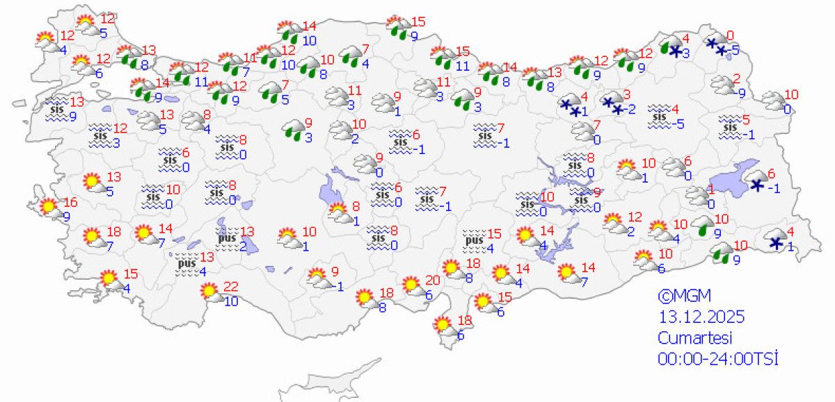 Sıcaklıklar genel olarak 0-15 derece arasında değişirken, doğuda daha soğuk olması bekleniyor.